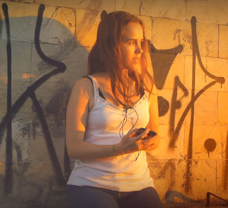 A atriz Érica Rabelo em cena do vídeo sobre Lugares invisíveis: cidade como jogo