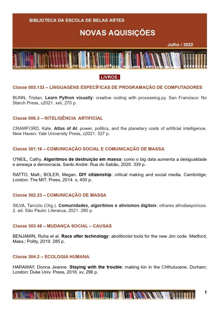 Clique na imagem a seguir para baixar, na íntegra, o Boletim de Novas Aquisições do mês de Julho de 2022: