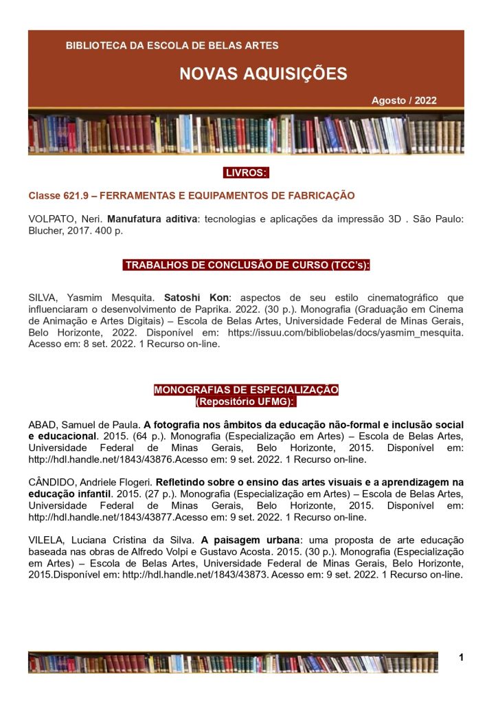 Clique na imagem a seguir para baixar, na íntegra, o Boletim de Novas Aquisições do mês de Agosto de 2022: