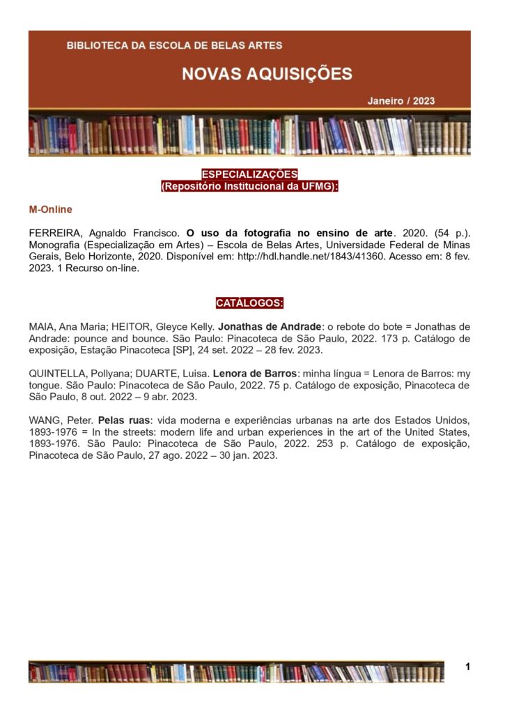 Clique na imagem a seguir para baixar, na íntegra, o Boletim de Novas Aquisições do mês de Janeiro de 2023: