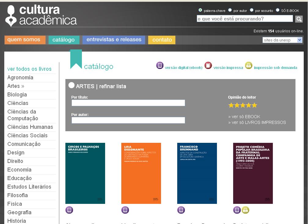 No site, é possível acessar a lista completa ordenada pelo título ou pelo autor. Ainda conta com motores de busca.